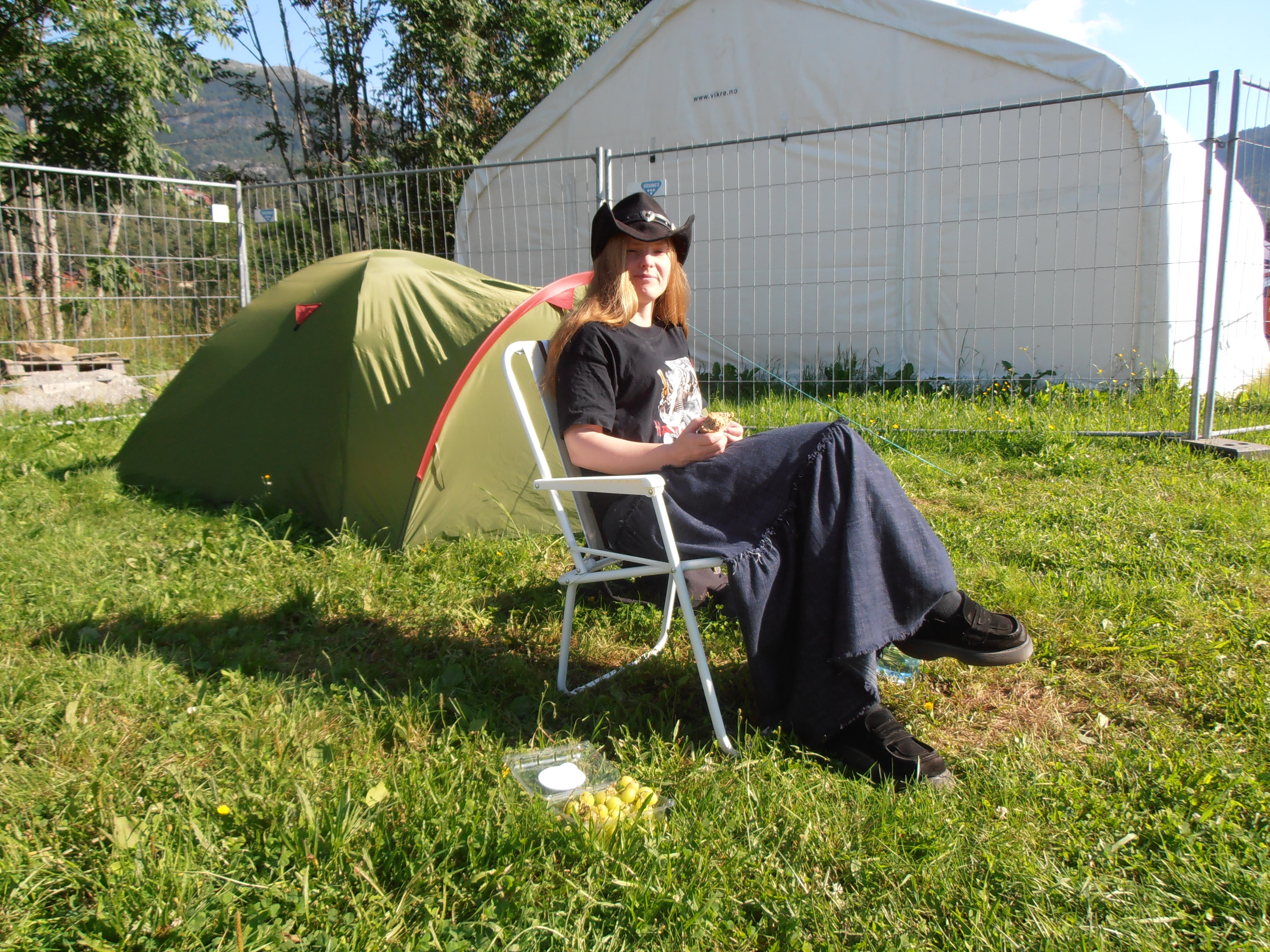 Jeg vandret ned i sentrum igjen for å handle litt vann og mat. Når jeg om tilbake så hadde jeg en dame som bodde i teltet ved siden av meg også :-)Vi fikk flere naboer som dagene gikk. Folksomt og med musikk 24-7. Jeg hadde ikke noe imot det, det var som forventet når det var en musikk festival.