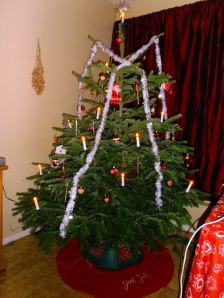 We both decorated the christmastree red this year, with silver glitter stars and Donald Duck candy sticks, as I always wanted to have them on my tree since I saw it in the cartoon at every christmas 🙂