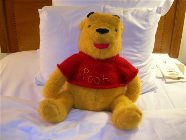… Just before his arrival to Norway Christmas 2011 my son had an accident and went sick on his Pooh bear. And his father did bin him :-O My son cried on the phone, and his first reaction was, "Mommy you have to knit another Pooh bear to me", and then I got the story.