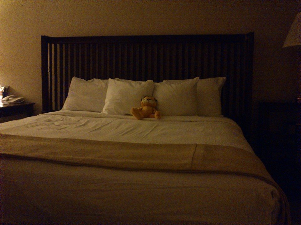 E kom frem Mandag 23 Desember om kvelden. Hotell med badekar 😀 Diger seng for lille meg og Pusur 🙂 Og der var CMT på TVen 😀
