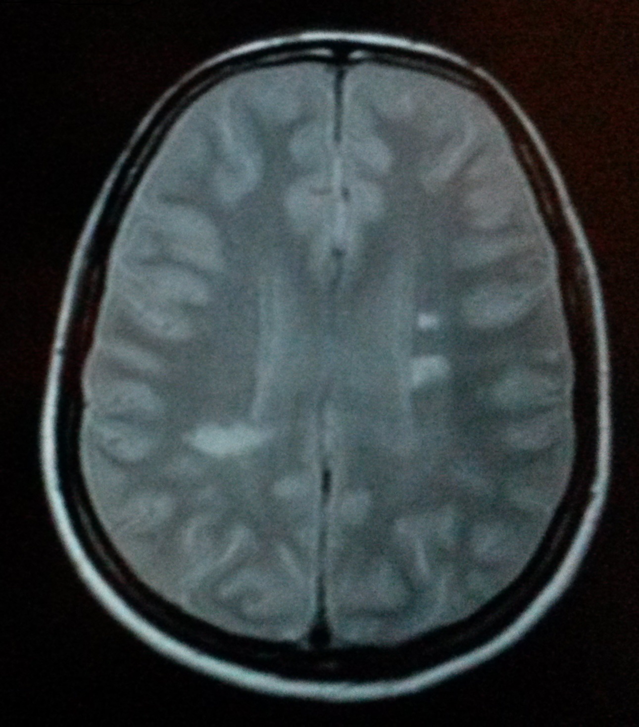 Hjelpes!!! Gurimalla, ka e d her tenkte e, rene halloween :-O I ren panikk måtte e se nærmere på de andre bildene, for MR bilder e har sett av Plakk (hvite flekker) og forklart hva MS egentlig er, ser slik ut: